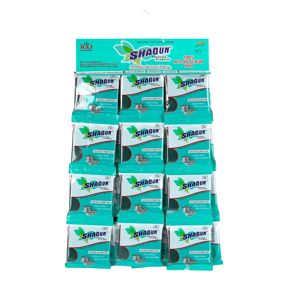 SHAGUN S-M Nylon Scrub Pad Strip Pack | 100% Nylon Kitchen Scrubber | Tough Grease & Stain Remover | Hanging Retail Pack